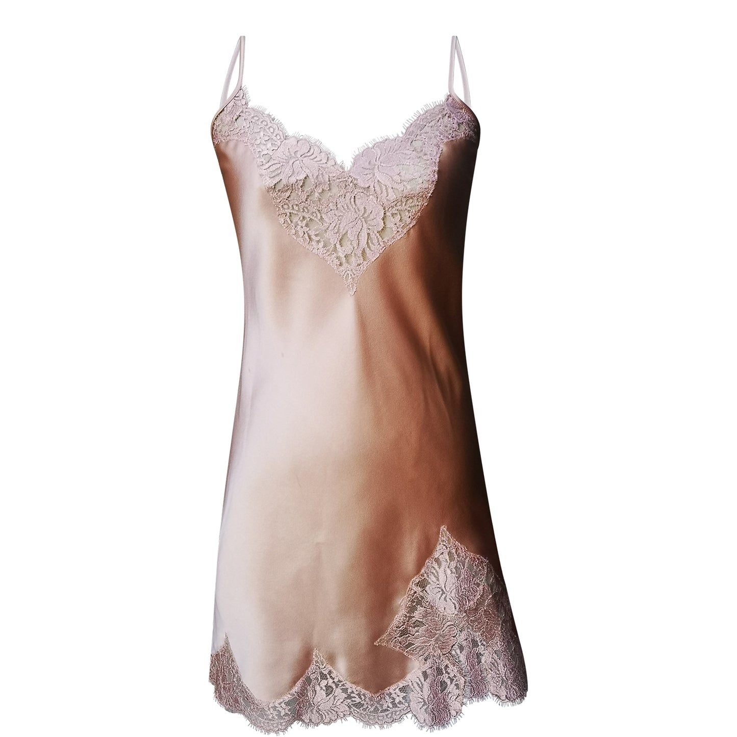 Nude Silk Slip with Scalloped French Lace - Mini length