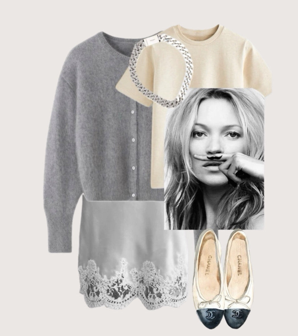 Elevate your style with this silk midi skirt, sitting gracefully on the waist for a flattering silhouette. Adorned with Alençon lace, the "Queen of Laces." Perfectly paired with loafers or slingbacks, complete the look with a matching silk camisole for effortless chic.