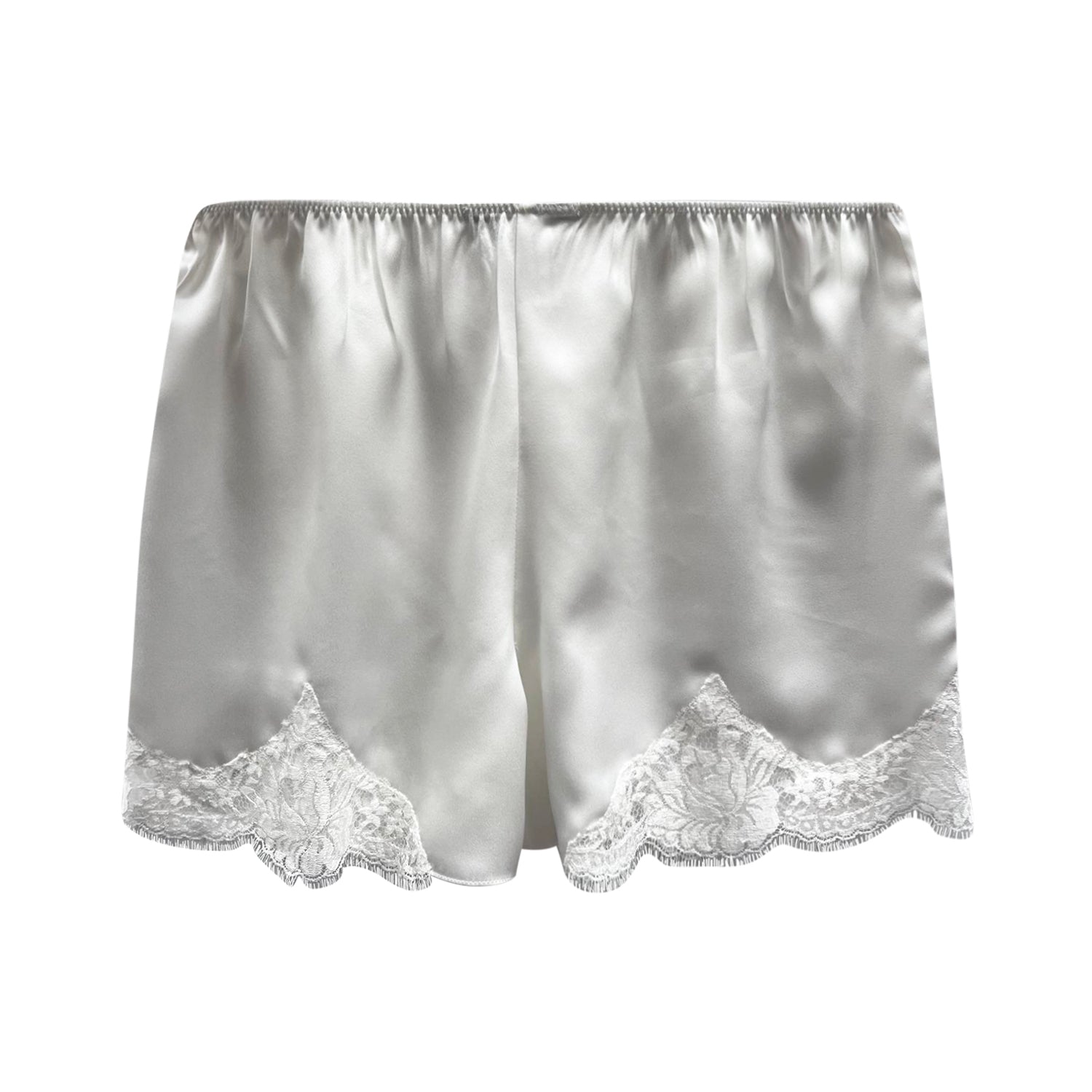 Meet the most versatile piece in your wardrobe. Designed for both elegant lounging and casual days, these shorts blend comfort with undeniable style. Lustrous silk-satin gives them a fluid, graceful drape, beautifully finished with delicate lace trim. The practical elasticated waistband provides all-day (and all-night) comfort.
